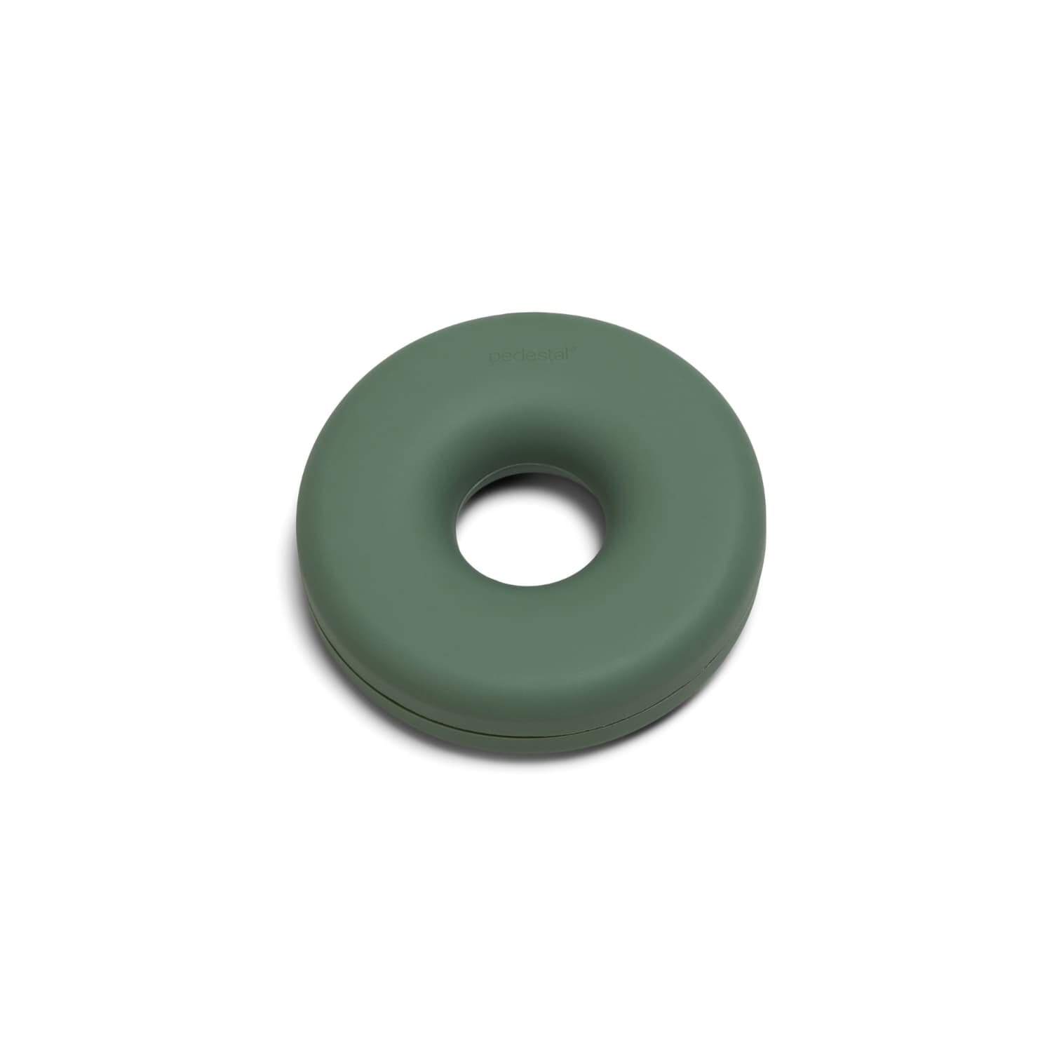 Med sin runde, bagel-inspirerte form og matte overflate i dempet grønn, gir den et ryddig og stilrent uttrykk både bak TV-en, under skrivebordet eller på hjemmekontoret.