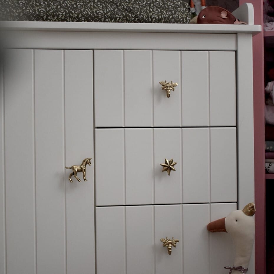 Queen Bee er en dekorativ knott som vil innføre et lekent preg på din kommode eller skap. Kan også brukes på vegger og fungere som en smykkeopphenger. Lag hullet først og stram til forsiktig.