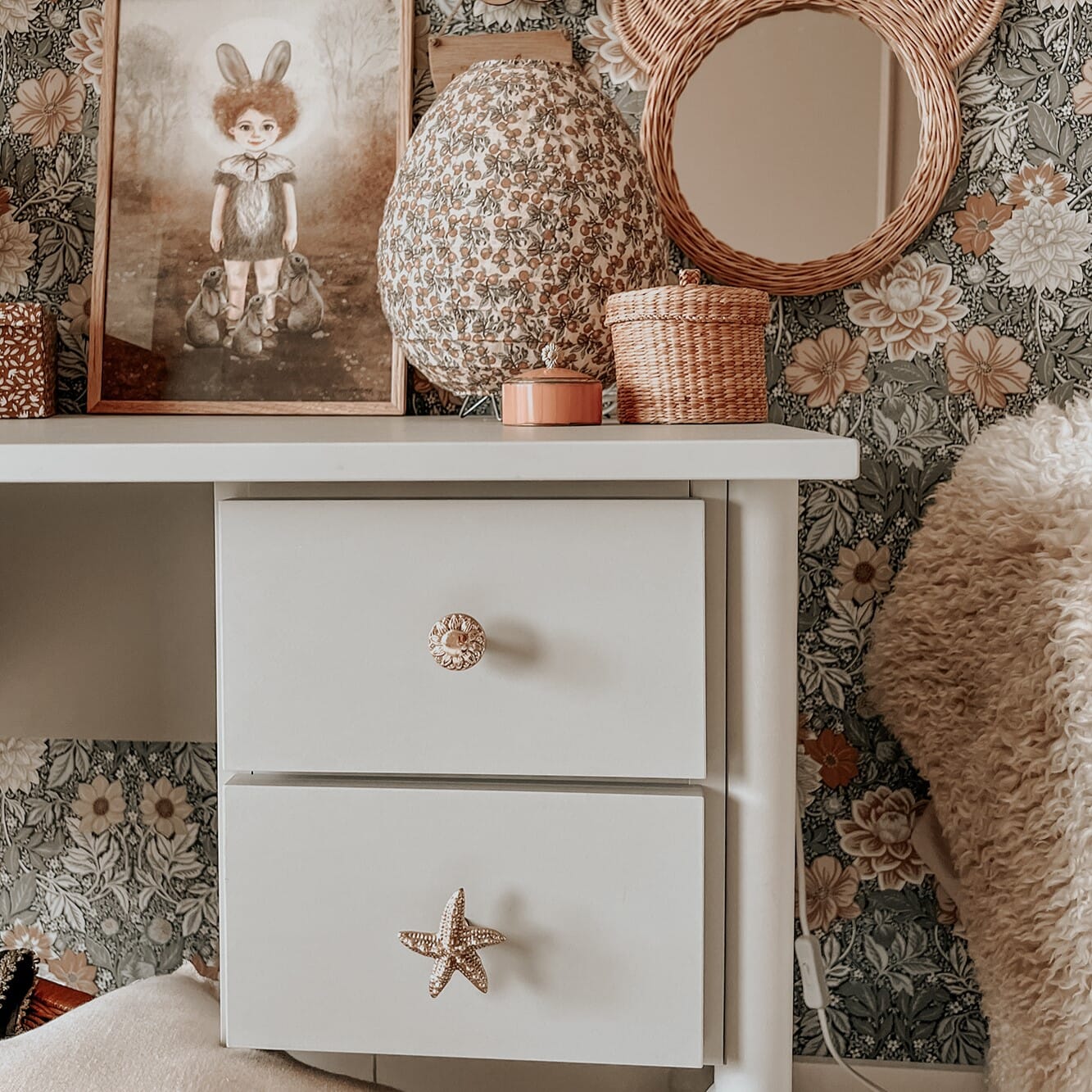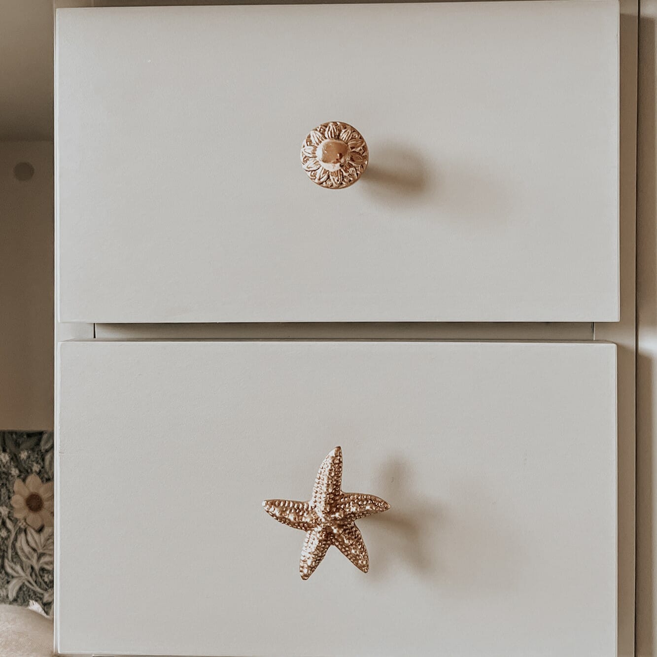 Ruby Seastar er en dekorativ knott som vil innføre et lekent preg på din kommode eller skap. Kan også brukes på vegger og fungere som en smykkeopphenger. Lag hullet først og stram til forsiktig.