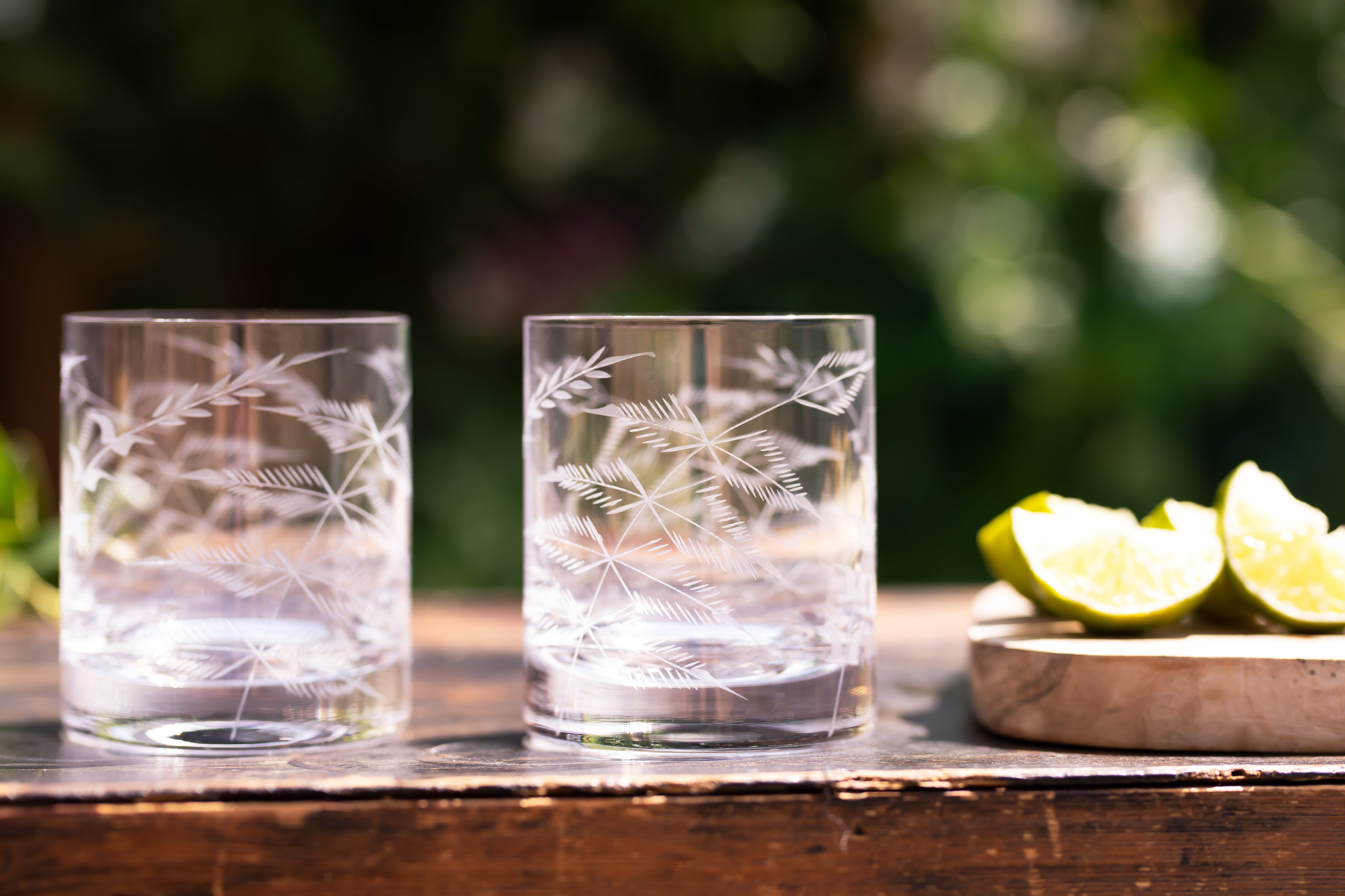 Sett med vakre krystallglass fra The Vintage List. The Vintage List lager glass inspirert av gamle vintagedesign fra svunne tider. Hvert glass er håndlaget og gravert for hånd.