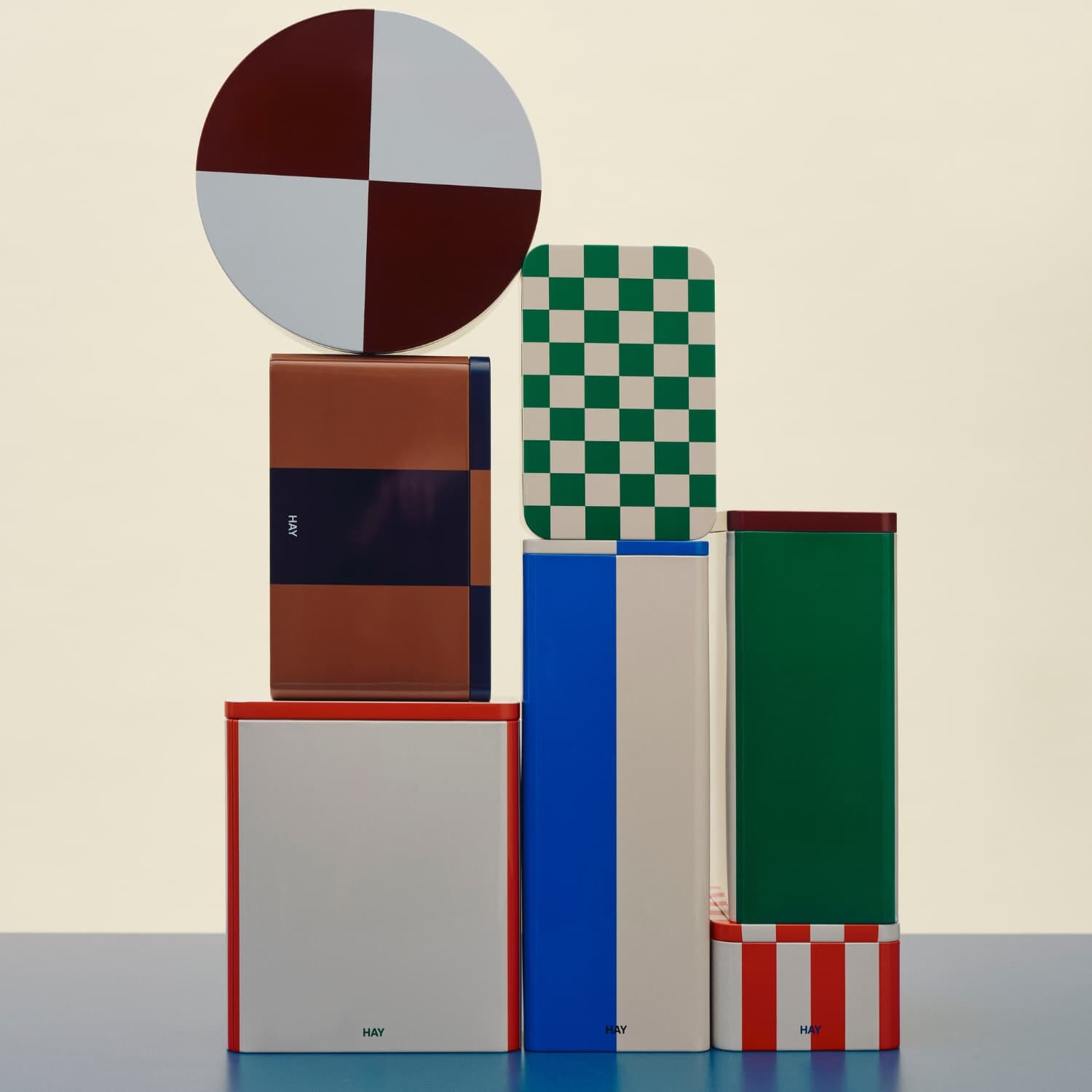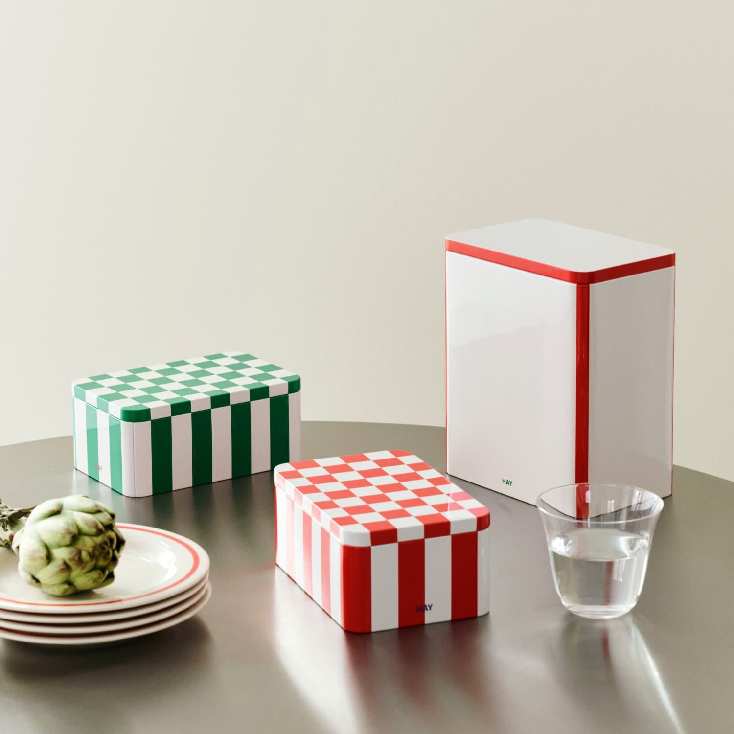 Tin Oppbevaringsboks Large i hvit og rød fra HAY kombinerer funksjonalitet med et lekent, grafisk uttrykk.