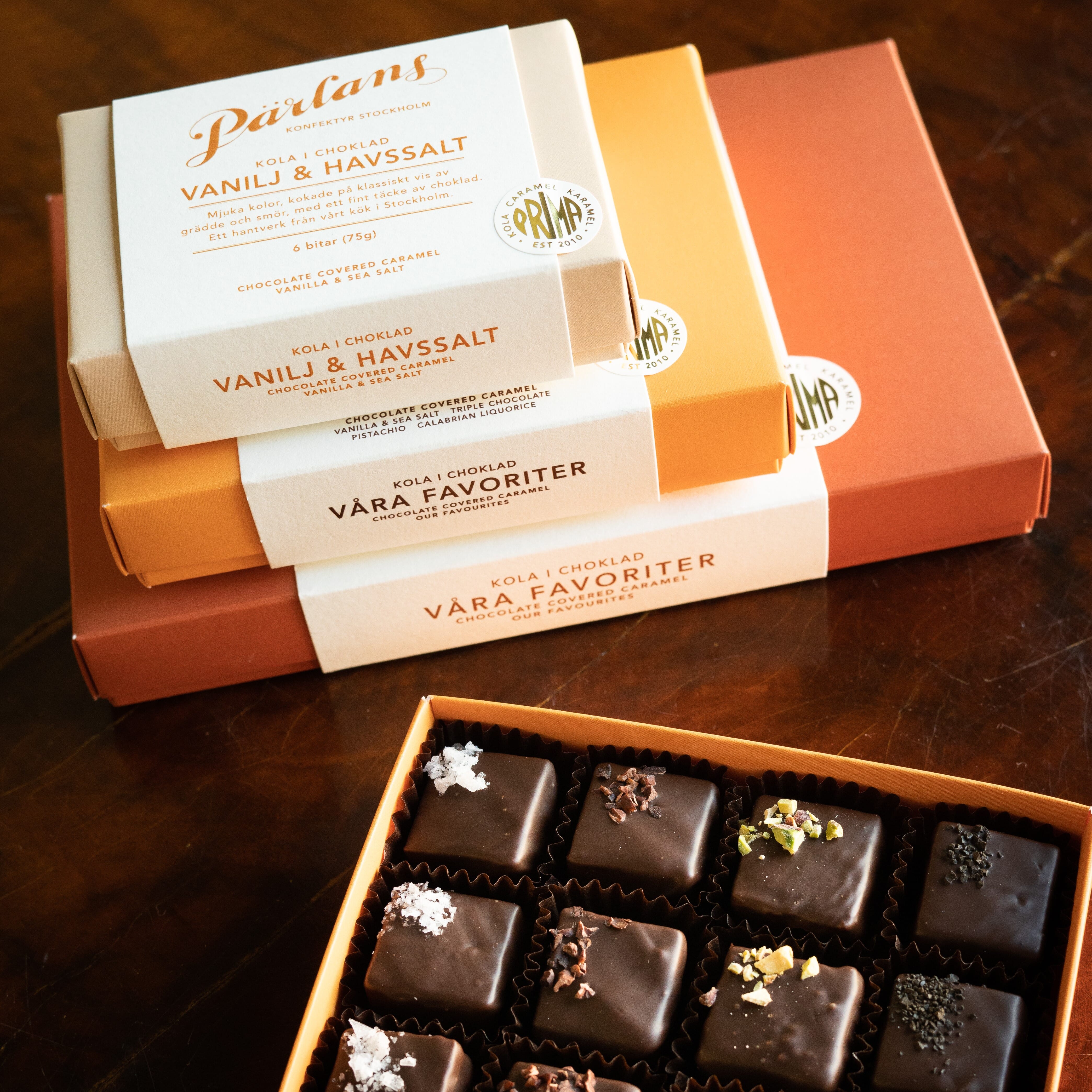 Nyt herlige biter av din mest elskede sjokoladeovertrukne karamell i en sjarmerende eske. Unn deg selv eller gled noen du er glad i.