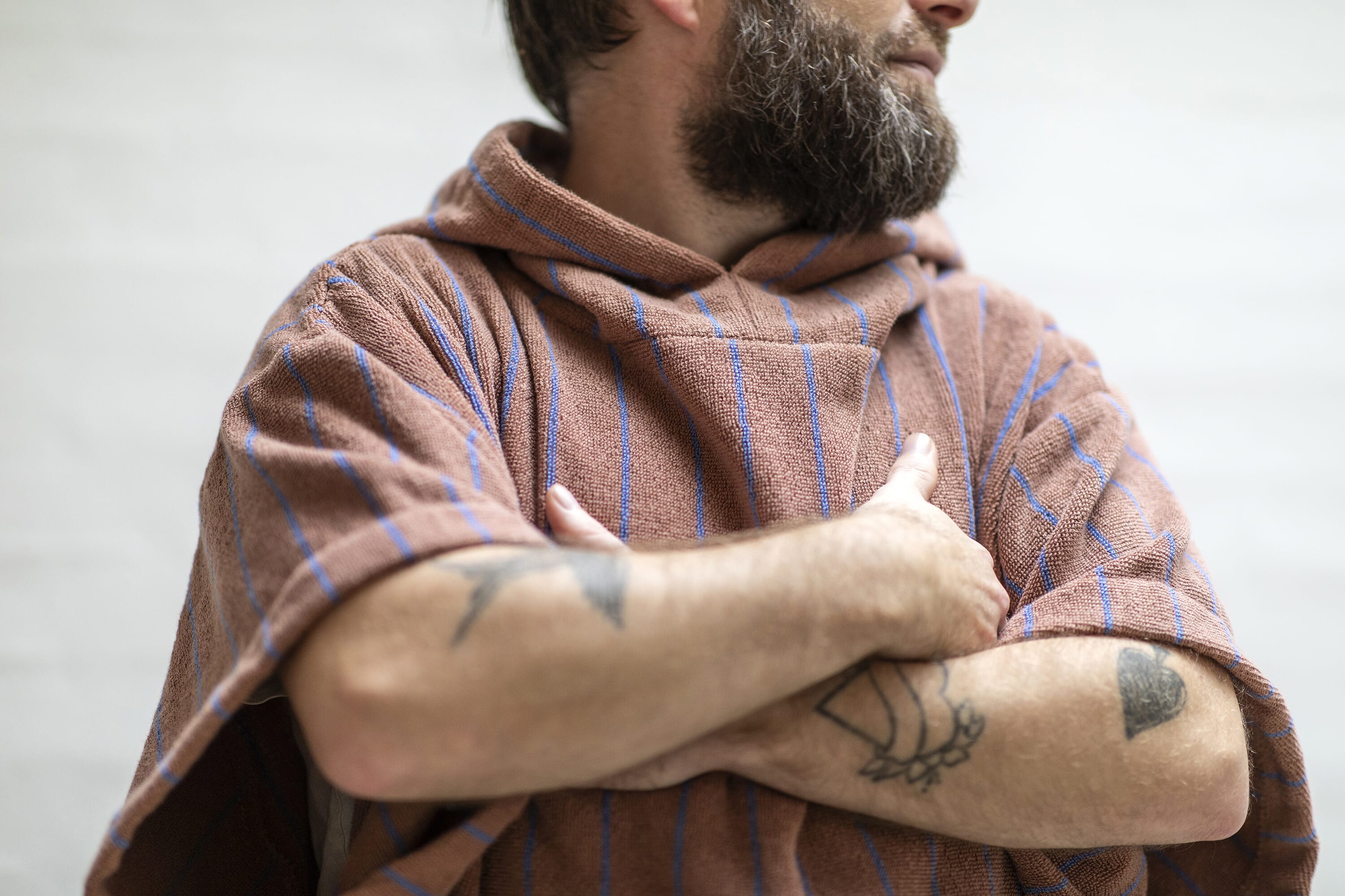 Ponchoen er helt genial å ha med på stranda hvor du enkelt skifter fra vått badetøy under det romslige håndkleet. Laget i 100% 385-grams bomull holder den deg god og varm når sola begynner å gå ned. Du kan selvfølgelig også bruke den hjemme for å se kul ut på sofaen.