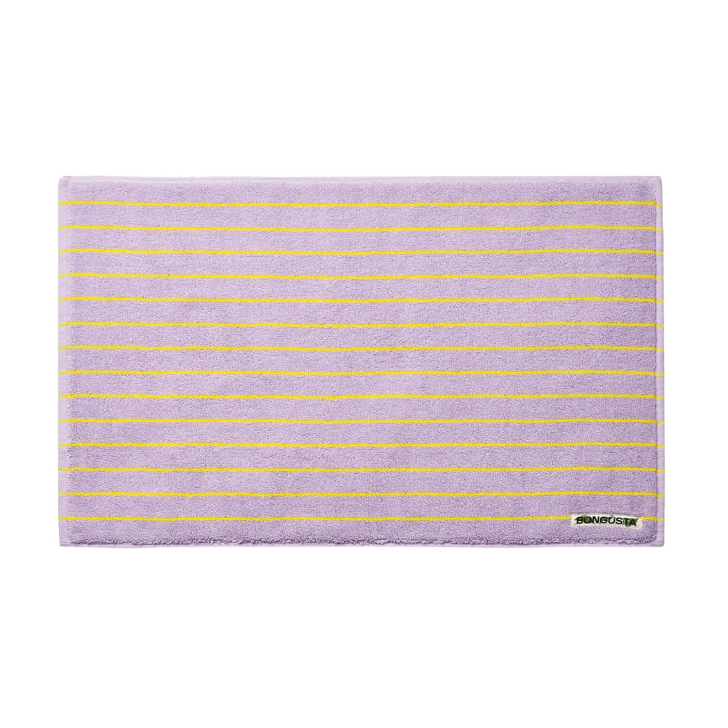 Med horisontale striper i friske kontraster av lilla og neon-gul, tilfører badematten energi og personlighet til baderommet. Den er OEKO-TEX®-sertifisert og vevd i dobbelttråd, noe som gir ekstra slitestyrke og lang levetid. Plasser den foran dusjen, badekaret eller speilet, og kombiner gjerne med håndklær og morgenkåpe fra Naram-serien for et helhetlig uttrykk.