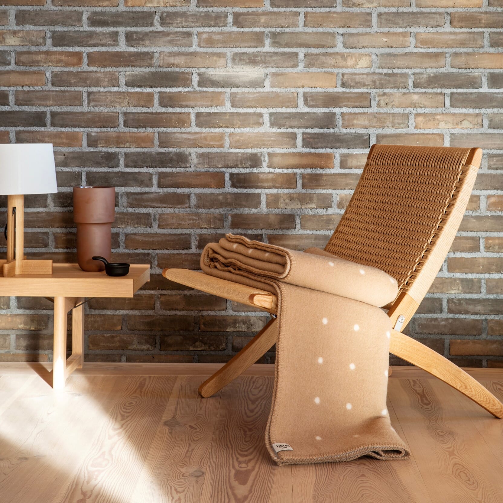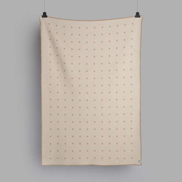 Pastille følger en Røros Tweed-tradisjon med nordiske grafikkelementer. Det åpne rutenettet med kontrastprikker etterlater et rent og strukturert inntrykk.