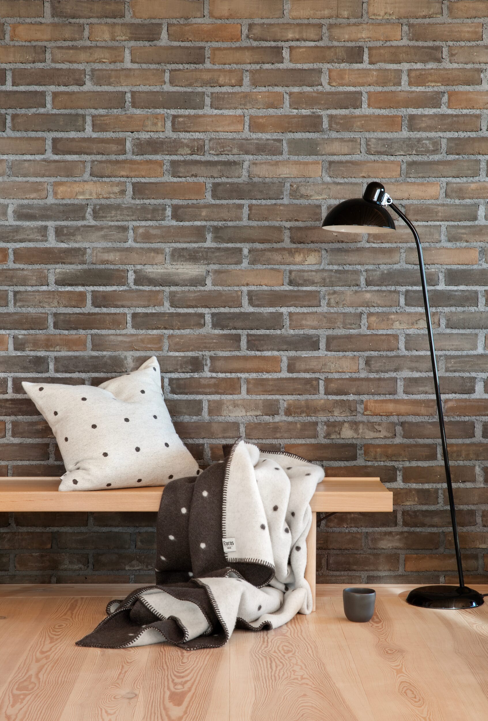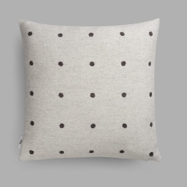 Pastille følger en Røros Tweed-tradisjon med nordiske grafikkelementer. Det åpne rutenettet med kontrastprikker etterlater et rent og strukturert inntrykk.