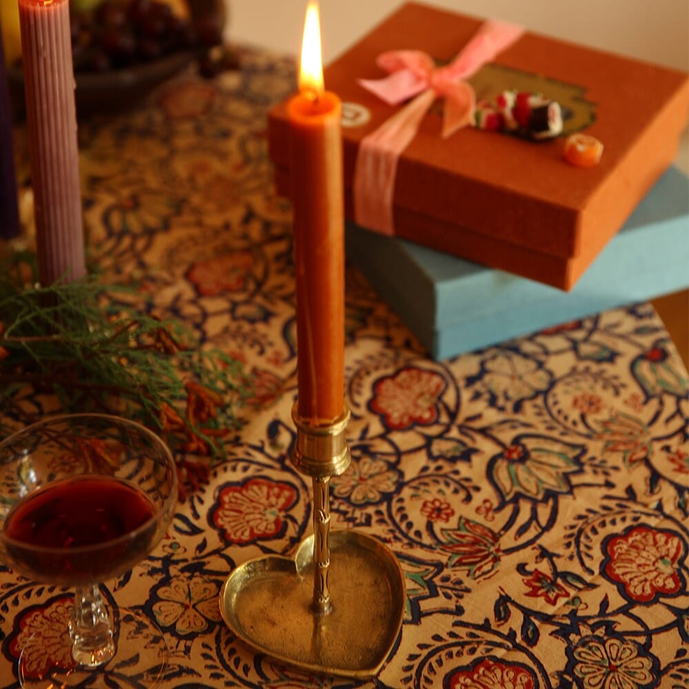 Denne lysestaken er håndlaget i India. På grunn av den håndlagde naturen til dette produktet, kan det forventes små variasjoner i utseendet på hvert element. Ikke perfekt på noen måte, men unik desto mer!