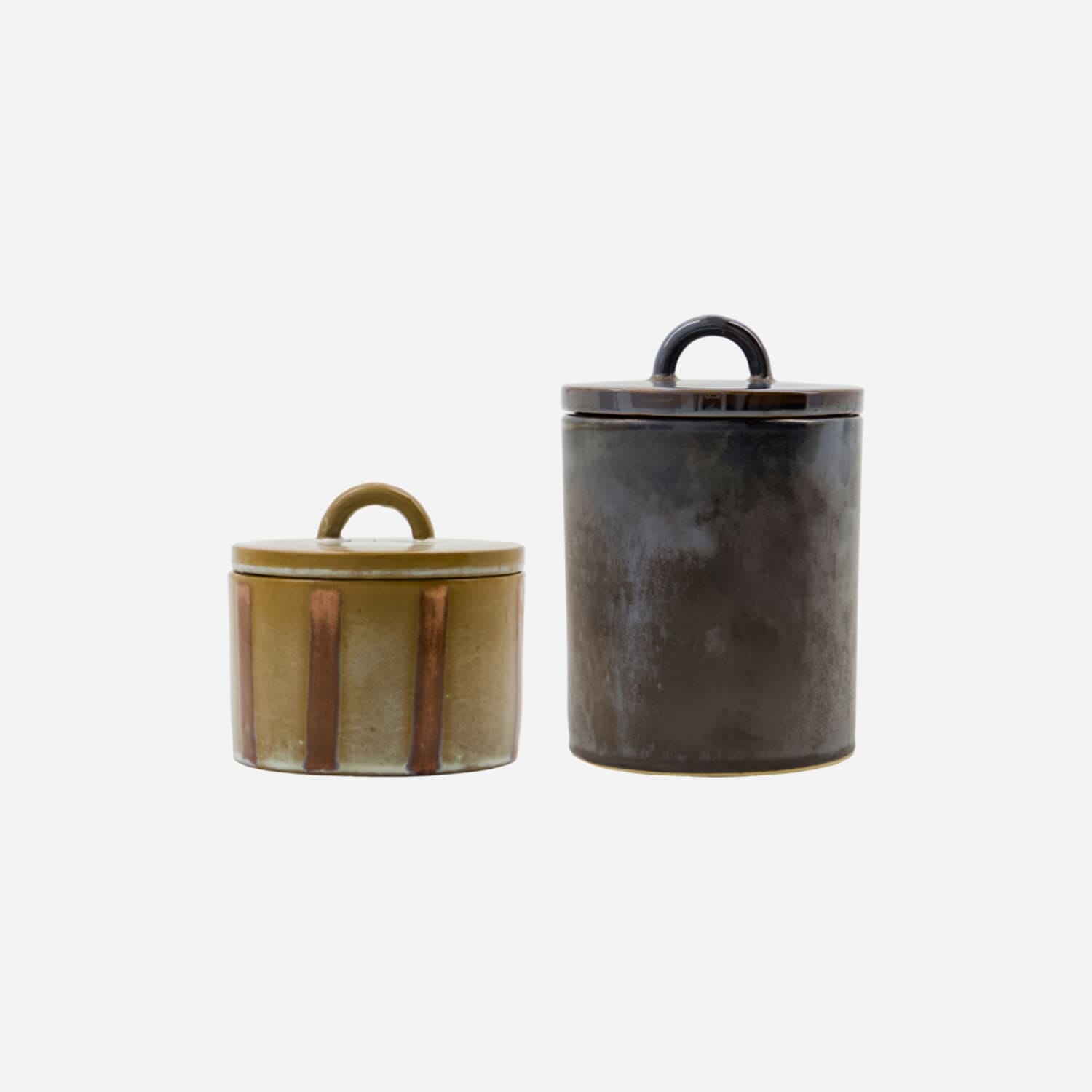 Gi hjemmet et varmt og personlig uttrykk med Oppbevaringsbokser Tallic – et sett med to håndlagde bokser i steintøy.